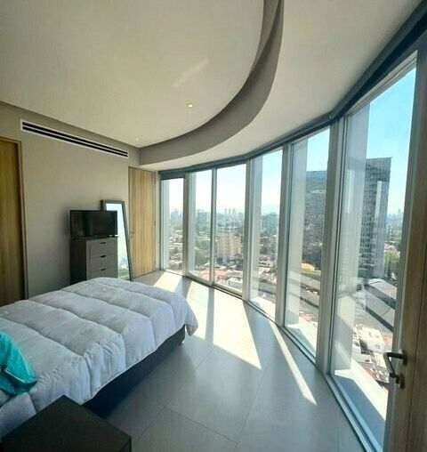 Las recamaras tienen una vista total periférica, brindando una sensación de amplitud y comodidad. Además, el departamento cuenta con acabados de alta calidad y un diseño moderno.